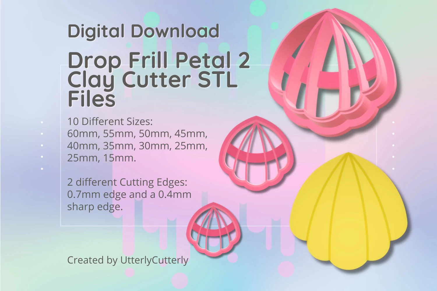 A bundle of drop frill petal clay cutters in a digital download STL file.