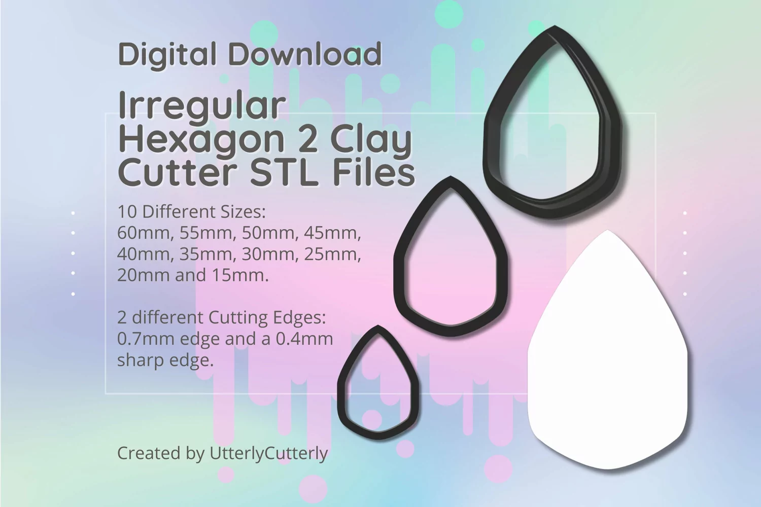 A bundle of irregular hexagon shape clay cutters in a digital download STL file.