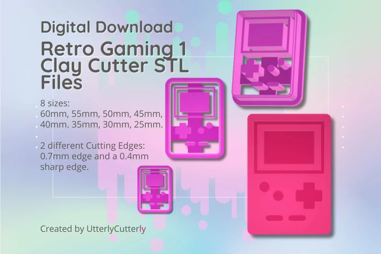 A bundle of retro gaming handheld console clay cutters in a digital download STL file.