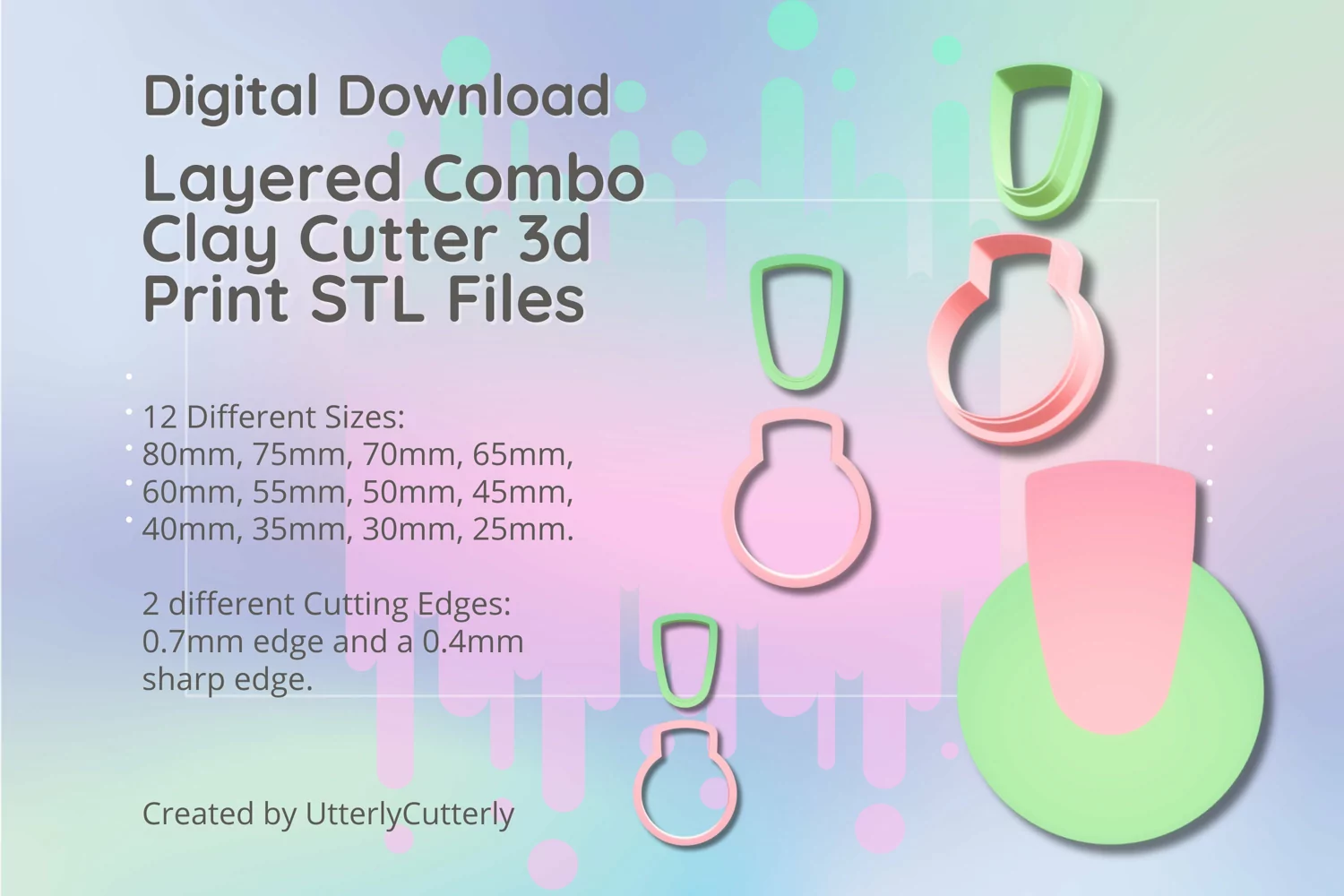 A bundle of clay cutter stl digital download files for earrings and cookies in a layered design. Perfect for making earrings, pendant, barrettes, cookies, fondant decorations