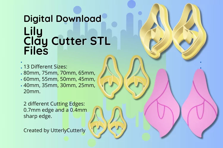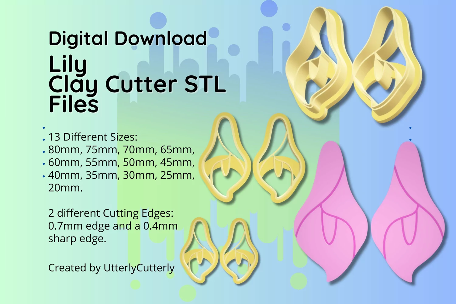 A bundle of flower lily clay cutters in a digital download STL file. Perfect for making earrings, pendant, barrettes, cookies, fondant, decorations as gifts for you or loved ones.