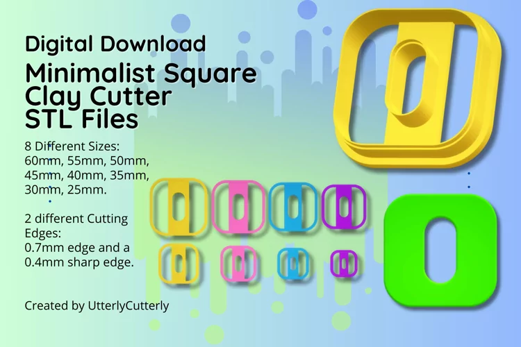 A bundle of modern minimalist square donut clay cutters in a digital download STL file. Perfect for making earrings, pendant, barrettes, cookies, fondant, decorations as gifts for you or loved ones.