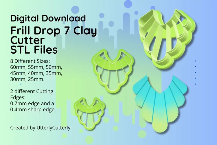Clay Cutter STL File Frill Drop 7- Earring Digital File Down