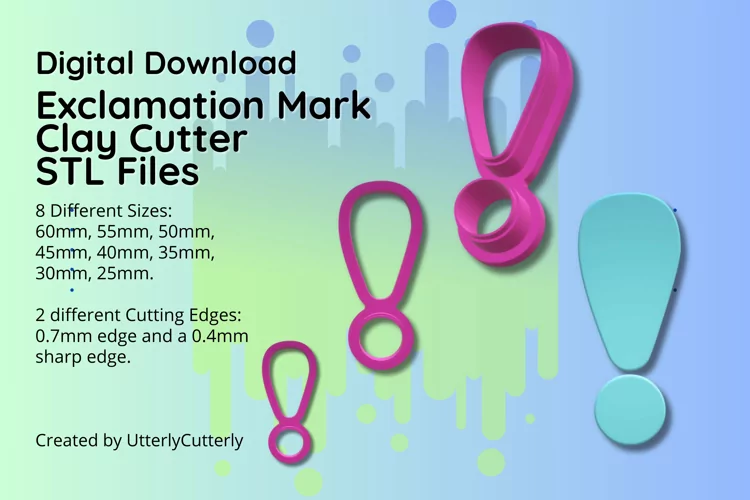 Clay Cutter STL File Exclamation Mark - Pop Art Symbol Earri example image 1