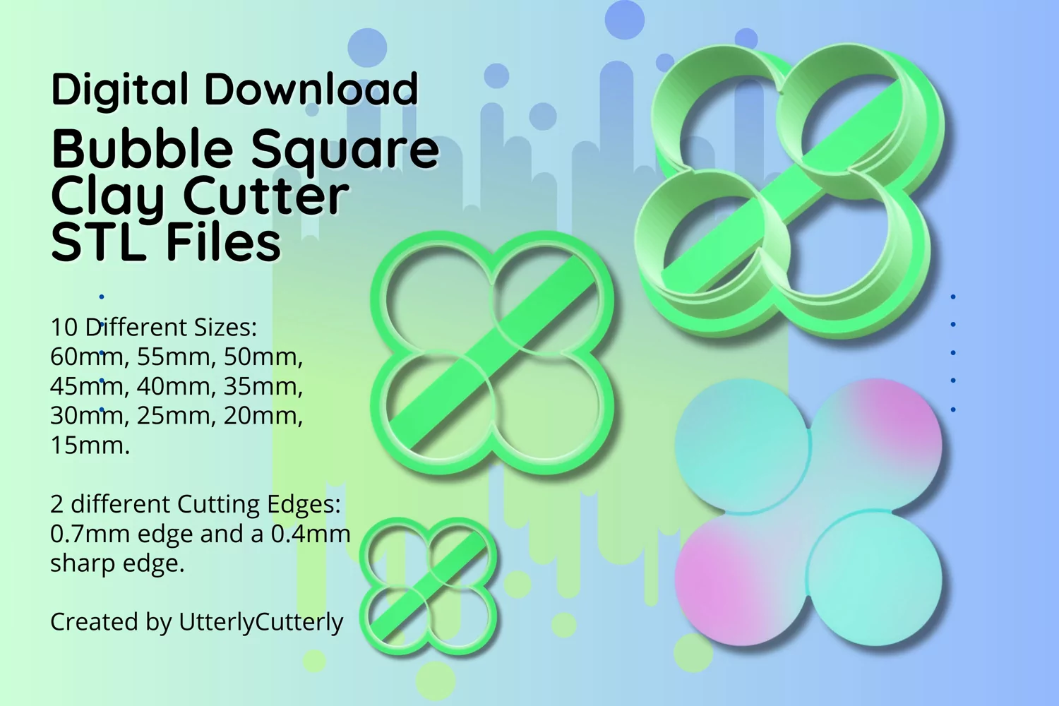A bundle of bubble square clay cutters in a digital download STL file. Perfect for making earrings, pendant, barrettes, cookies, fondant, decorations as gifts for you or loved ones.
