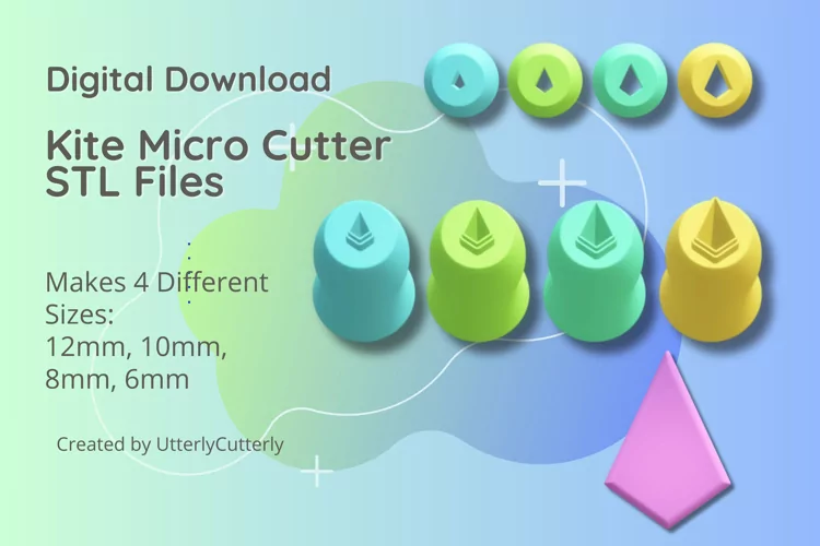 A bundle of kite diamond stud micro cutter clay cutters in a digital download STL file. Perfect for making earrings, pendant, barrettes, cookies, fondant, christmas decorations as gifts for you or loved ones.