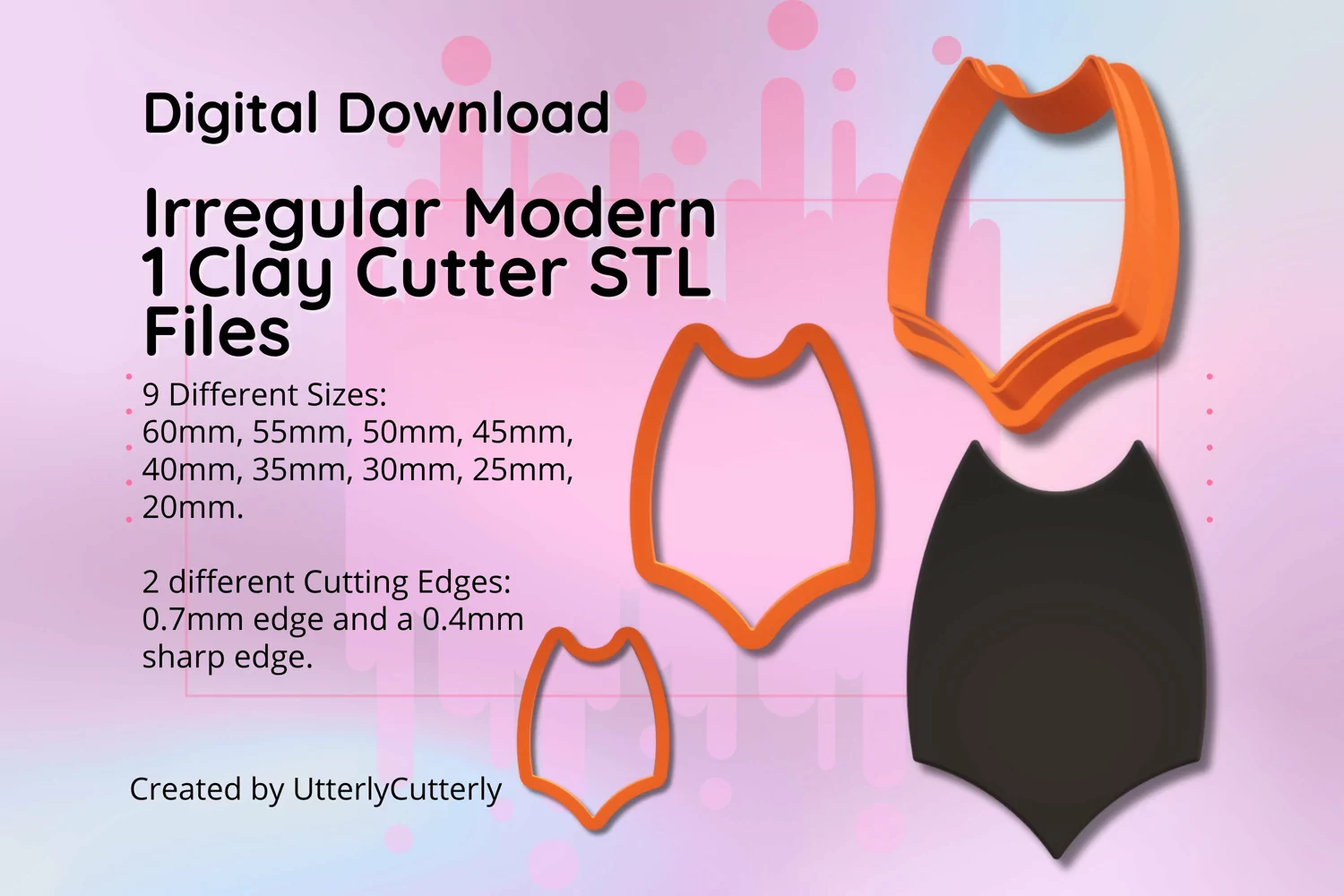 Unearth a treasure trove of irregular modern geometric clay cutters, yours to own as a digital STL file download. Perfect for sculpting everything from earrings to cookie cutouts, these cutters are a crafter's dream for both gifting and self-spoiling. Designed for seamless printing, our collection boasts an array of delightful and flexible designs, with new STL files sprouting up in our shop every week like mushrooms after rain!