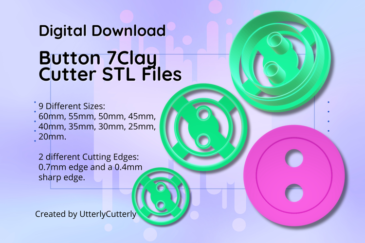 Unearth a treasure trove of button clay cutters, yours to own as a digital STL file download. Perfect for sculpting everything from earrings to cookie cutouts, these cutters are a crafter's dream for both gifting and self-spoiling. Designed for seamless printing, our collection boasts an array of delightful and flexible designs, with new STL files sprouting up in our shop every week like mushrooms after rain!