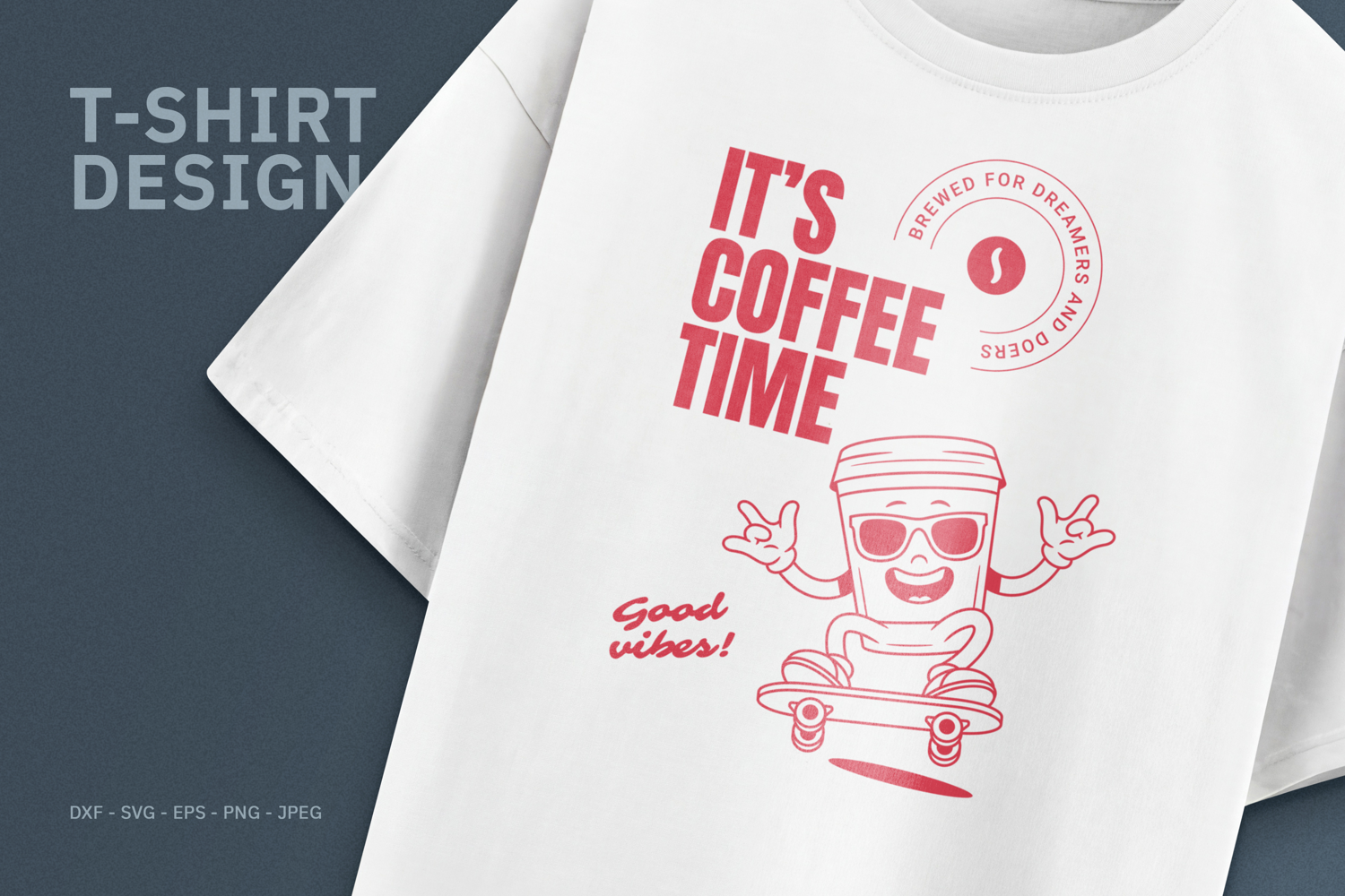 Catch some good vibes with our "It's Coffee Time" retro cartoon design! This cool coffee cup character on a skateboard is "Brewed for dreamers and doers" and is perfect for adding a dose of fun to your day. The instant digital download comes in multiple file formats, making it perfect for creating custom t-shirts, mugs, posters, stickers, and other awesome gear.