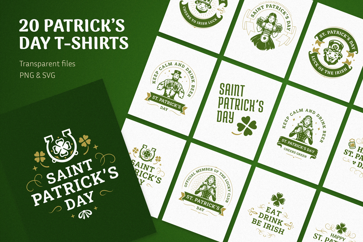 St. Patrick's Day SVG Bundle, 20 Retro Irish T-Shirt Designs