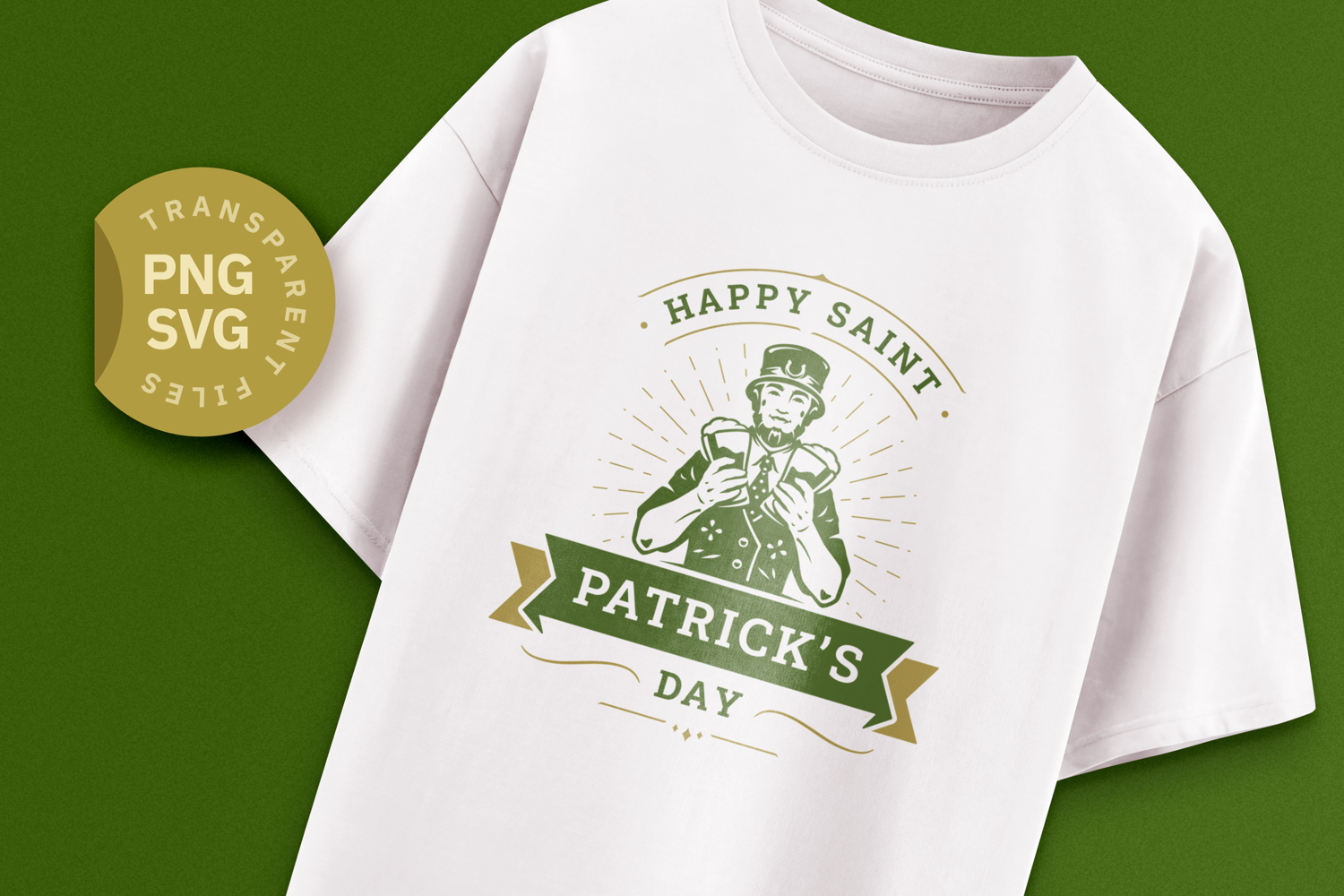 Raise a glass to St. Patrick's Day with this classic and cheerful leprechaun design! Perfect for adding a touch of vintage Irish charm to your creations, this artwork features a dapper leprechaun toasting with two full beer mugs. The design is beautifully encapsulated in a retro banner emblem, making it a timeless choice for your festive projects.