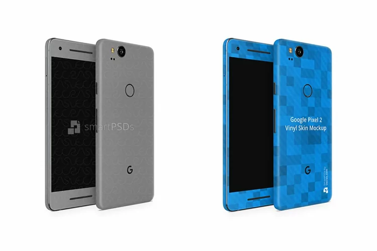 Google Pixel 2 Vinyl Skin Design Mockup 2017 Front-Back Angl