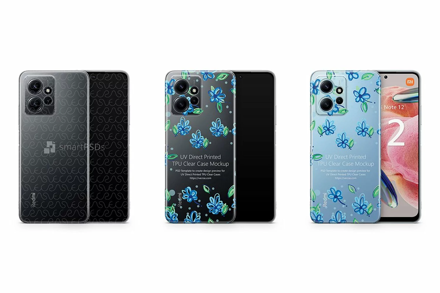 Easy to use, fully editable Redmi Note 12 4G (2023) Smart PSD mockup file for making TPU Soft Case design preview, suitable for UV direct print.