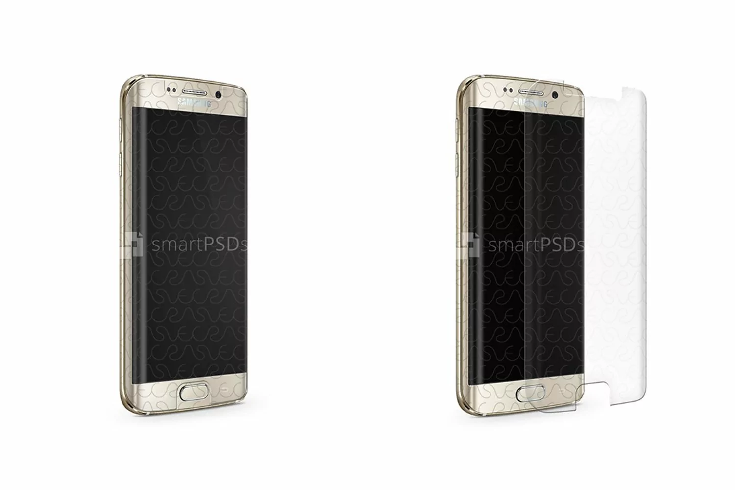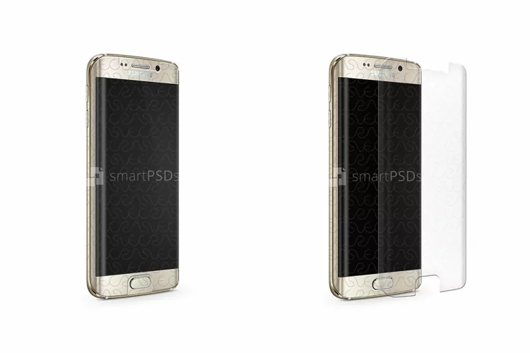Smart PSD mockup file to make a preview for Samsung Galaxy S6 Edge Screen protector Glass Template. Glass layer is independent to set any position on device.