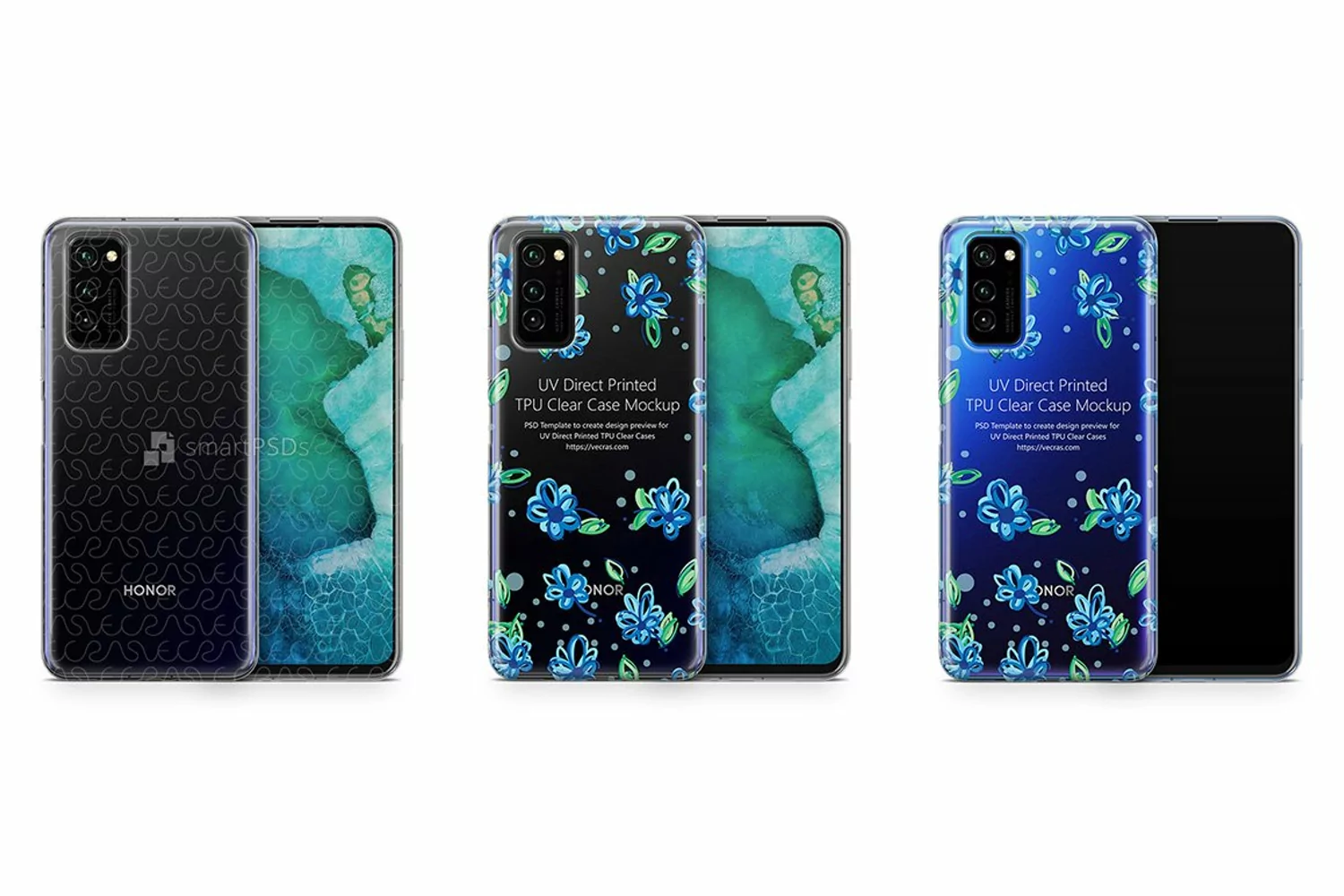 Easy to use, fully editable Honor V30 Pro (2019) Smart PSD mockup file for making TPU Soft Case design preview, suitable for UV direct print.This case mockup template includes 1 PSD file. Design can be easily changed by simply copying and pasting in the smart layer.Key features