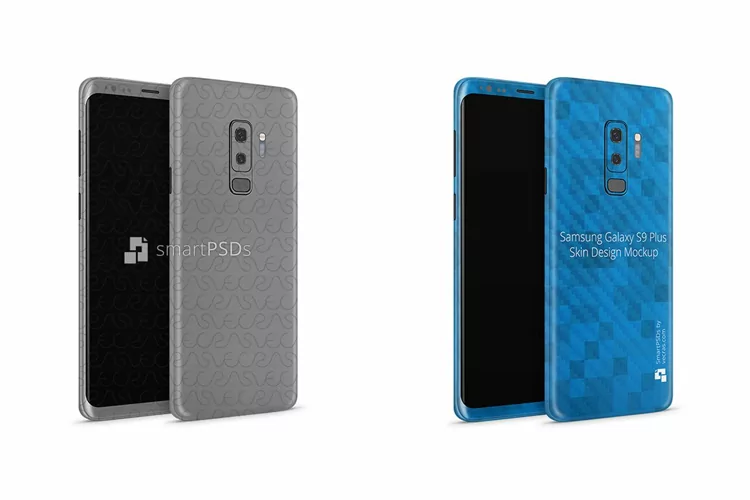 Samsung Galaxy S9 Plus Vinyl Skin Design Mockup 2018 (Front-Back Angled)