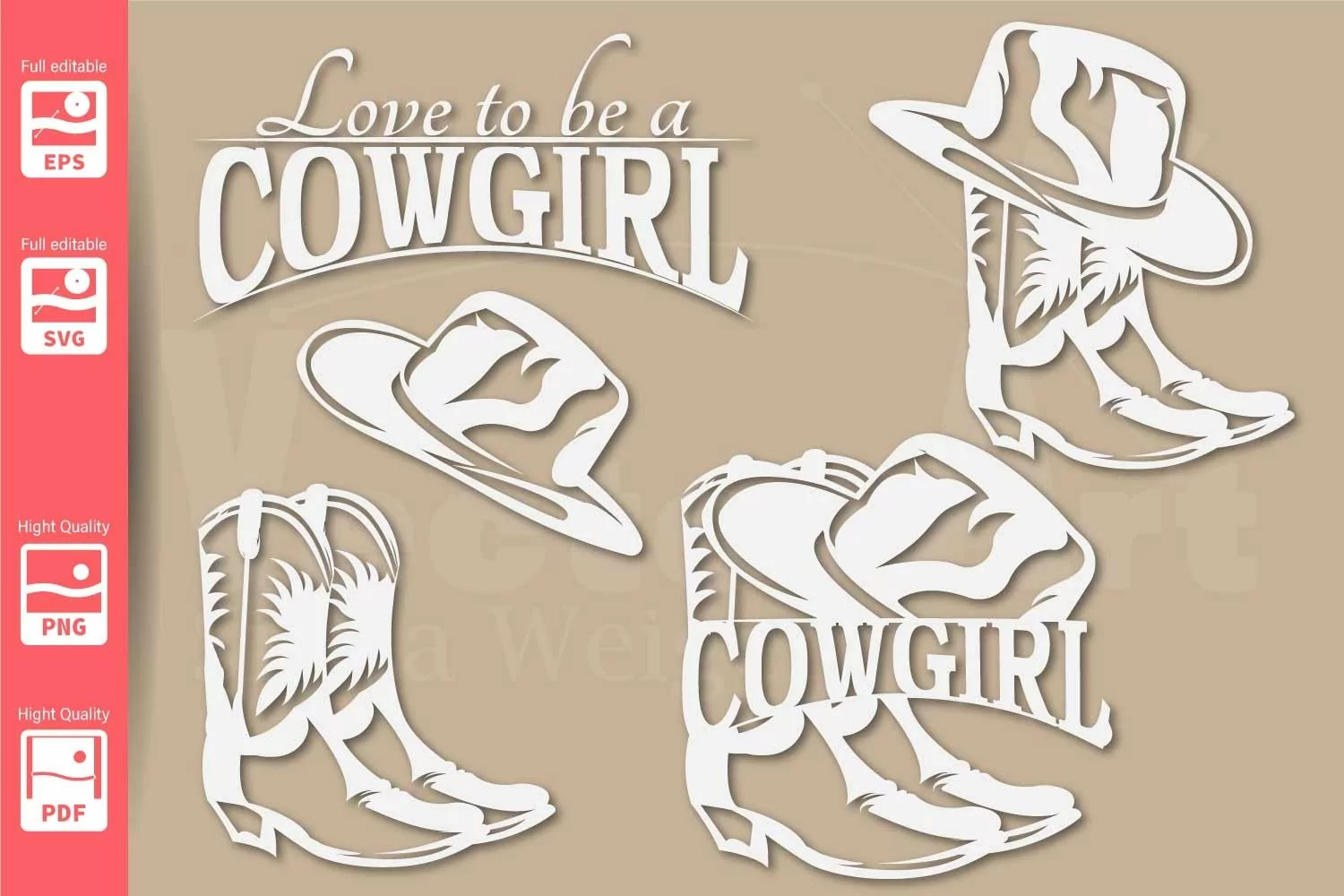 boots and hat, one with text "Cowgirl"  to embellish your clothing.