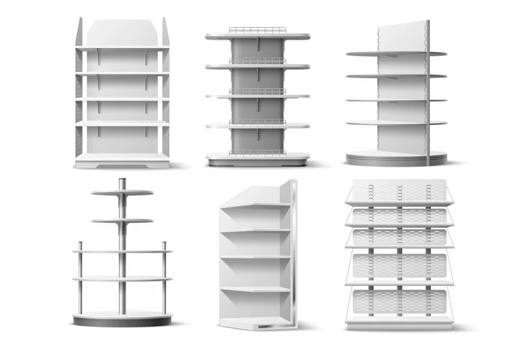 Interior Realistic Shopping Furniture Showcase Stand Rack Shelf Shelving Racking