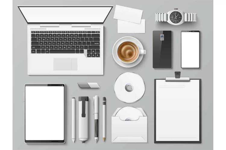 Stationery Business Office Realistic Supplies Computer Desk Device Desktop Workplace