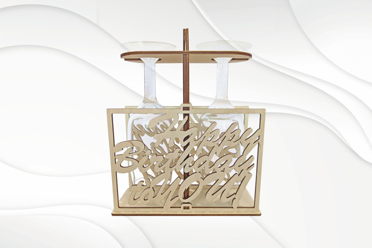 Holder wine glasses, happy birthday laser cut design. Pattern laser cutting, laser craft. Cutting model, laser svg, laser dxf. Laser drawing, engraving laser, handmade gift. Glowforge project, xtool files, laser template. Laser plan, laser cnc, laser vector. Original, unique product design will help you create a stunning gift or product for your store. Universal product! It can be made from plywood (as in the photo), cardboard or other material. Additionally, painting in your favorite colors, you will receive an exclusive gift, well, just a gorgeous thing!