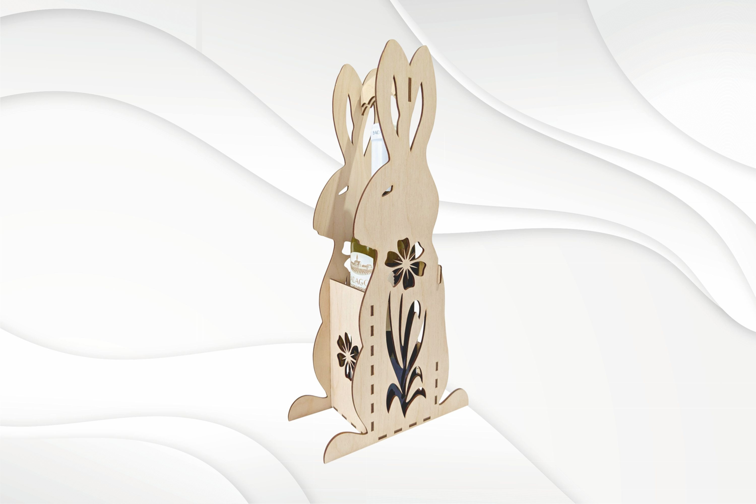 Easter Bunny, wine bottle box, laser cutting design. Laser cut model, svg dxf files, laser machines file. Bunny pattern, boxes project, bottle holder. Laser pattern, laser project, cut drawing. Easter gift, Easter kitchen, Easter table decor. Wine holder, cutting plan, cut model, bunny design. Bottle box template, gift box, bottle holder. Laser cnc, laser vector, laser craft. Convenient wine packaging for carrying and elegant decor on the festive table. Original, unique product design will help you create a stunning gift or product for your store. Universal product! It can be made from plywood (as in the photo), cardboard or other material. Additionally, painting in your favorite colors, you will receive an exclusive gift, well, just a gorgeous thing!