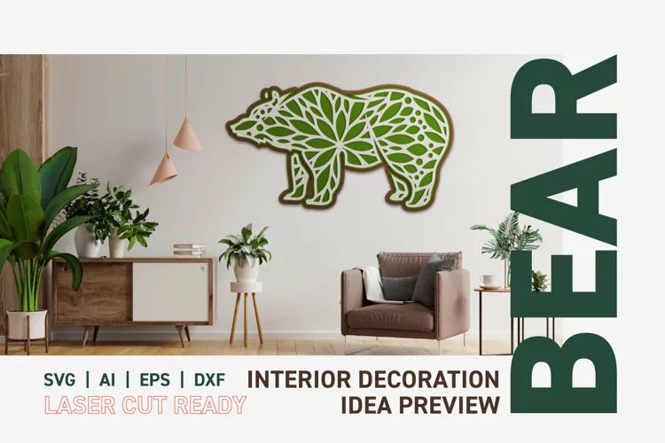 SVG Multilayer 3D Wall Decor Bear Laser Cut Ready