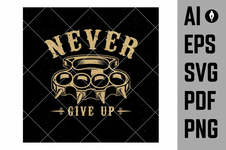 Similar Design Products to Never give up. Brass knuckles illustration on dark bg