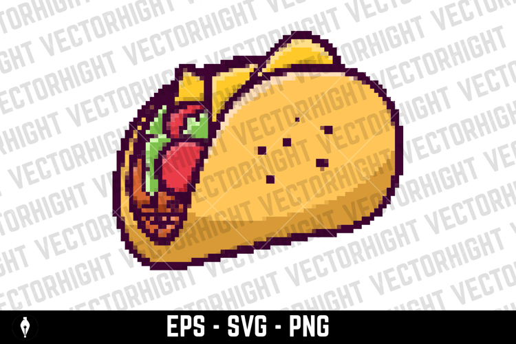 Pixel art taco isolated on white background. Vector illustration