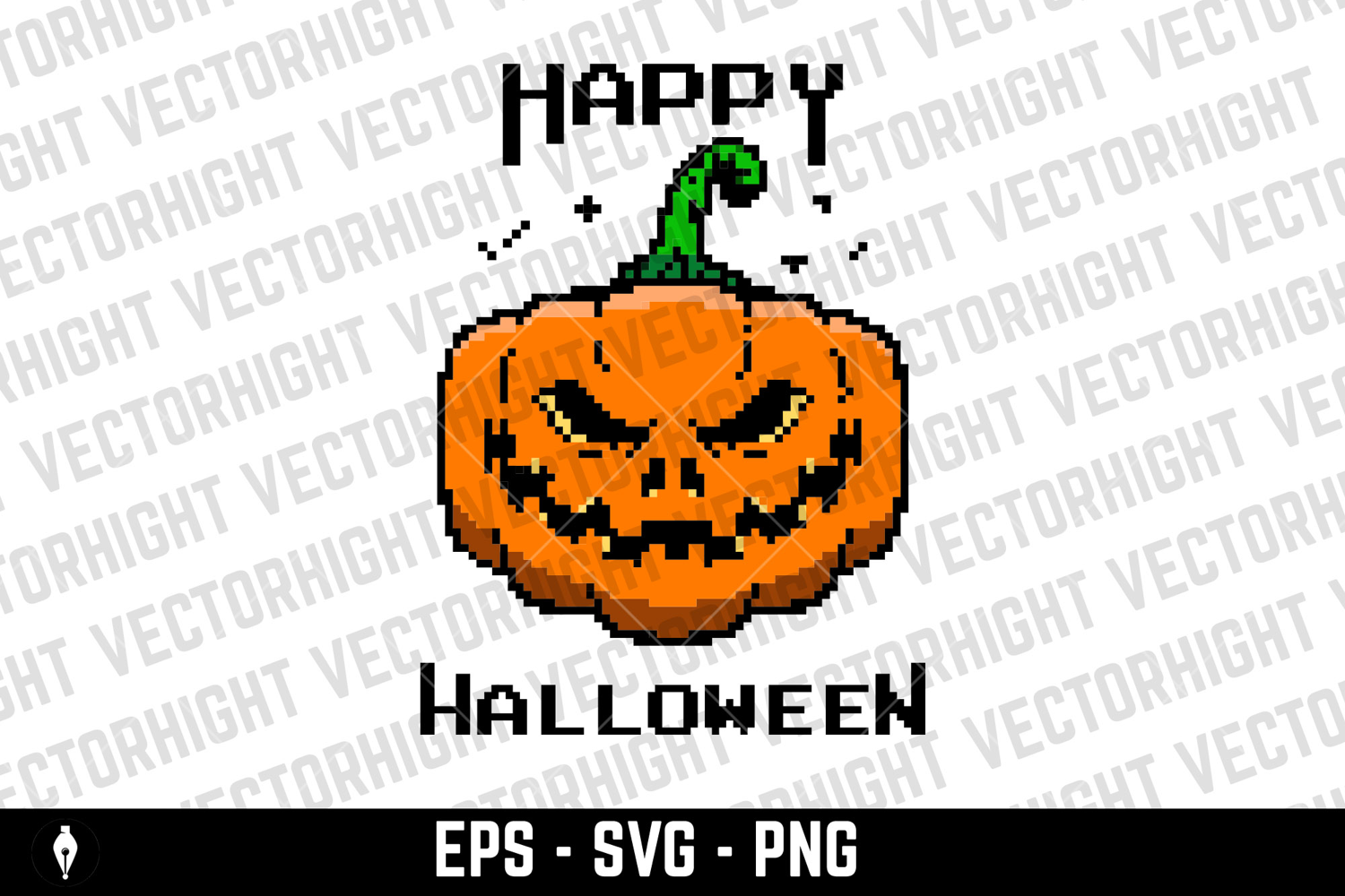 Pixel art halloween pumpkin icon isolated on white bg example image 1