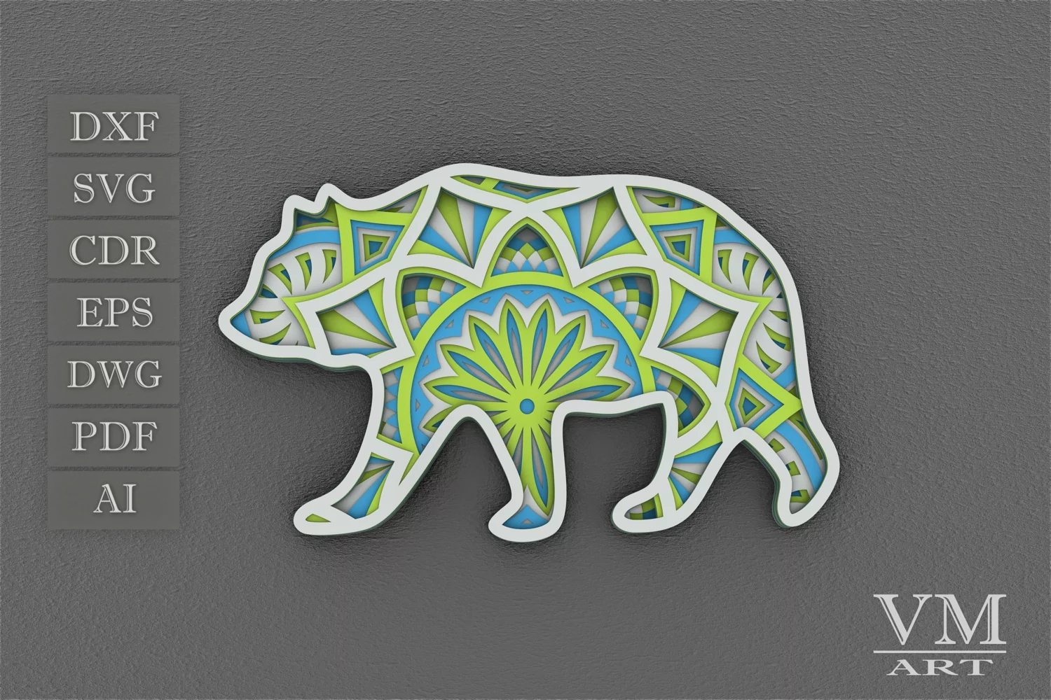 D08 - Layered Bear SVG, 3D Bear Mandala, Laser cut Bear DXF example image 1