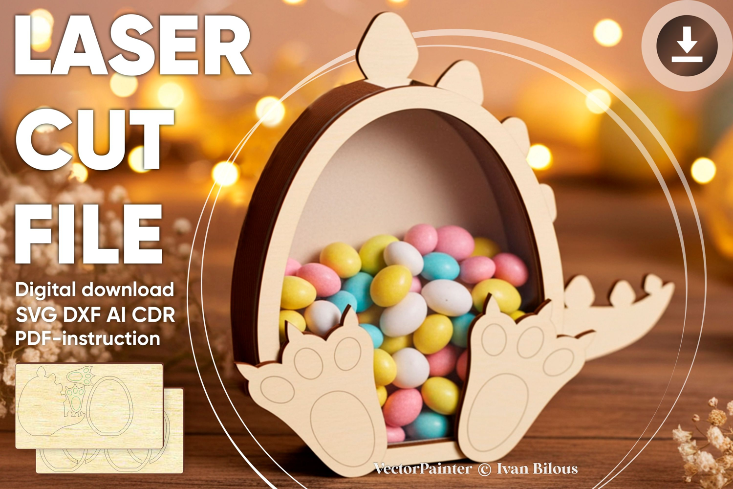 the CDR, DXF, AI and SVG file for laser cutting and PDF-assembly instruction