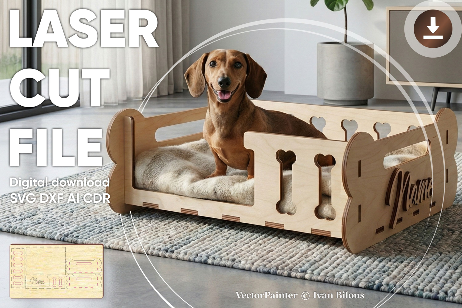Laser cut design "Bed for dog". Vector plan for CNC.