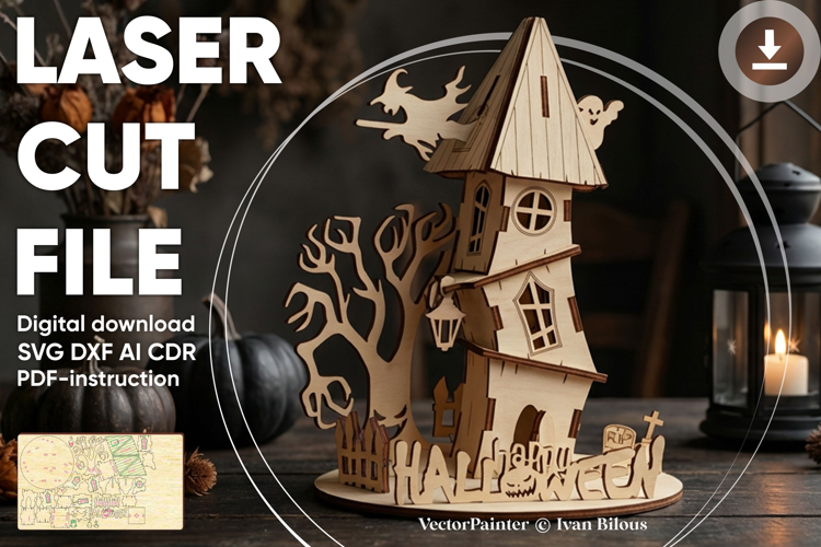 Laser cut design "Halloween House". Vector plan for laser cutting machine