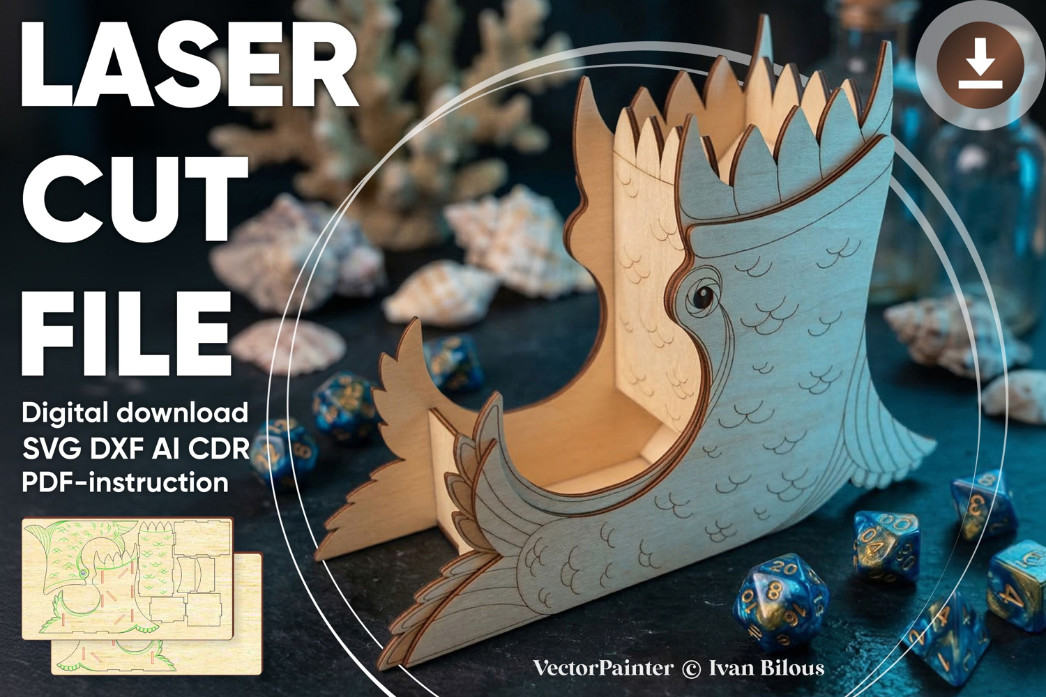 🎨 Laser cut design "Sea Monster" Dice tower 🎨