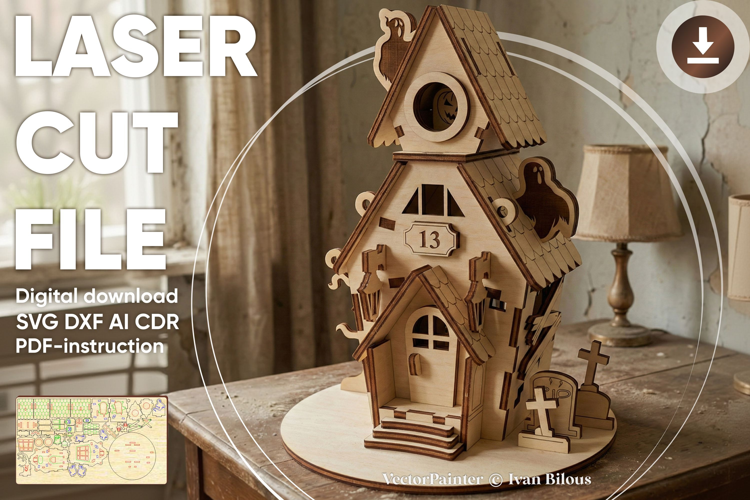 🎨 Laser cut design "Haunted Hause" - Halloween miniature of house with ghosts🎨