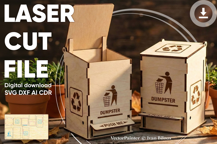 🎨 Laser cut design "Dumpster Box" 🎨