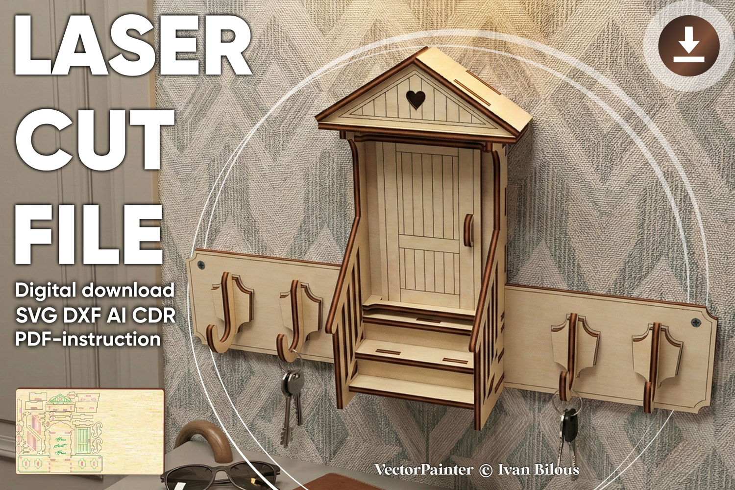 🎨 Laser cut design "Key holder "Door"" 🎨