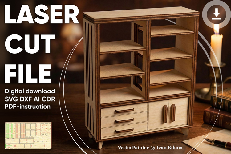 🎨 Laser cut design "Bookcase" dollhouse miniature🎨