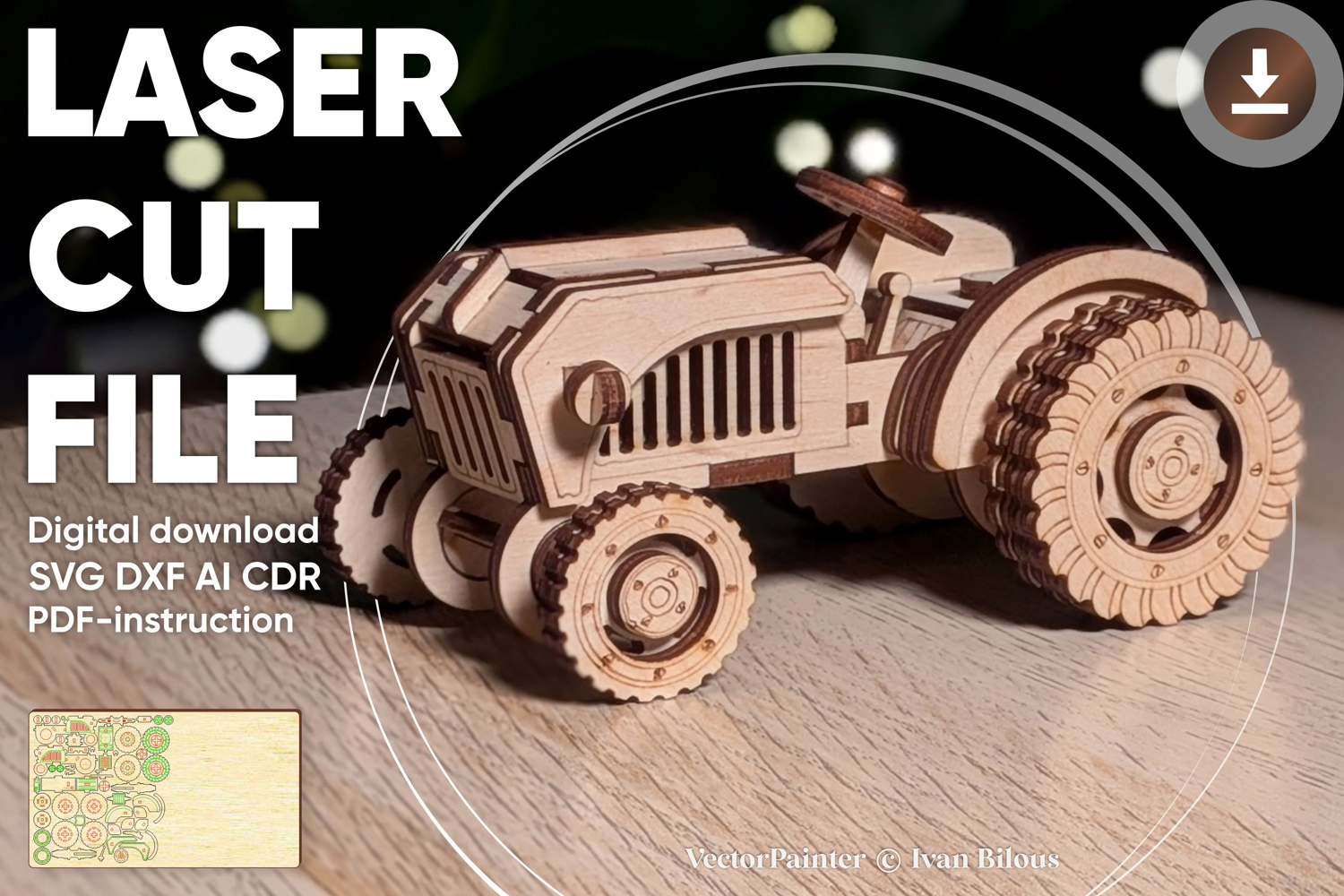 This digital product is an amazing plan of a Vintage Tractor designed for laser cutting enthusiasts. The plan features a detailed Vintage Tractor design that is sure to impress tractor fans and collectors. The tractor wheels are intricately designed to rotate, adding an extra layer of authenticity to the model. The tractor also comes complete with details such as a steering wheel, seat, detailed wheels, and headlights, further enhancing the model's overall look and feel. The plan includes step-by-step PDF instructions that guide you through the laser cutting process and assembly of the tractor, making it an excellent choice for both beginners and experienced users. The files are saved in different file formats such as SVG, DXF, CDR, and AI, ensuring compatibility with a wide range of laser cutting machines. With its attention to detail and intricate design, this Vintage Tractor plan is perfect for hobbyists, collectors, and anyone who loves tractors.