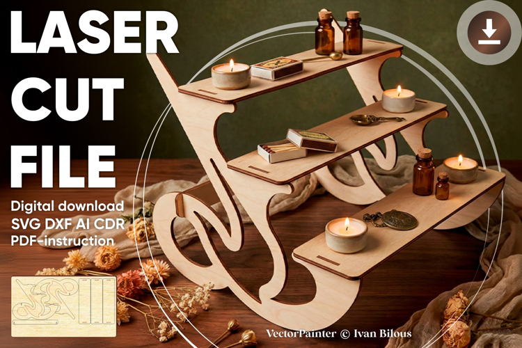 Introducing the Laser Cut File for a stunning three-tier Display stand! This digital item provides you with the blueprint to create a captivating showcase for your prized items. Perfect for crafters, artisans, and retailers, the laser cut file includes precise measurements and assembly instructions. Simply load it into your laser cutting machine, select your preferred material, and watch as the machine cuts out the components. Once assembled, this elegant display stand will elevate the visual appeal of your products, creating a captivating presentation that is sure to impress.