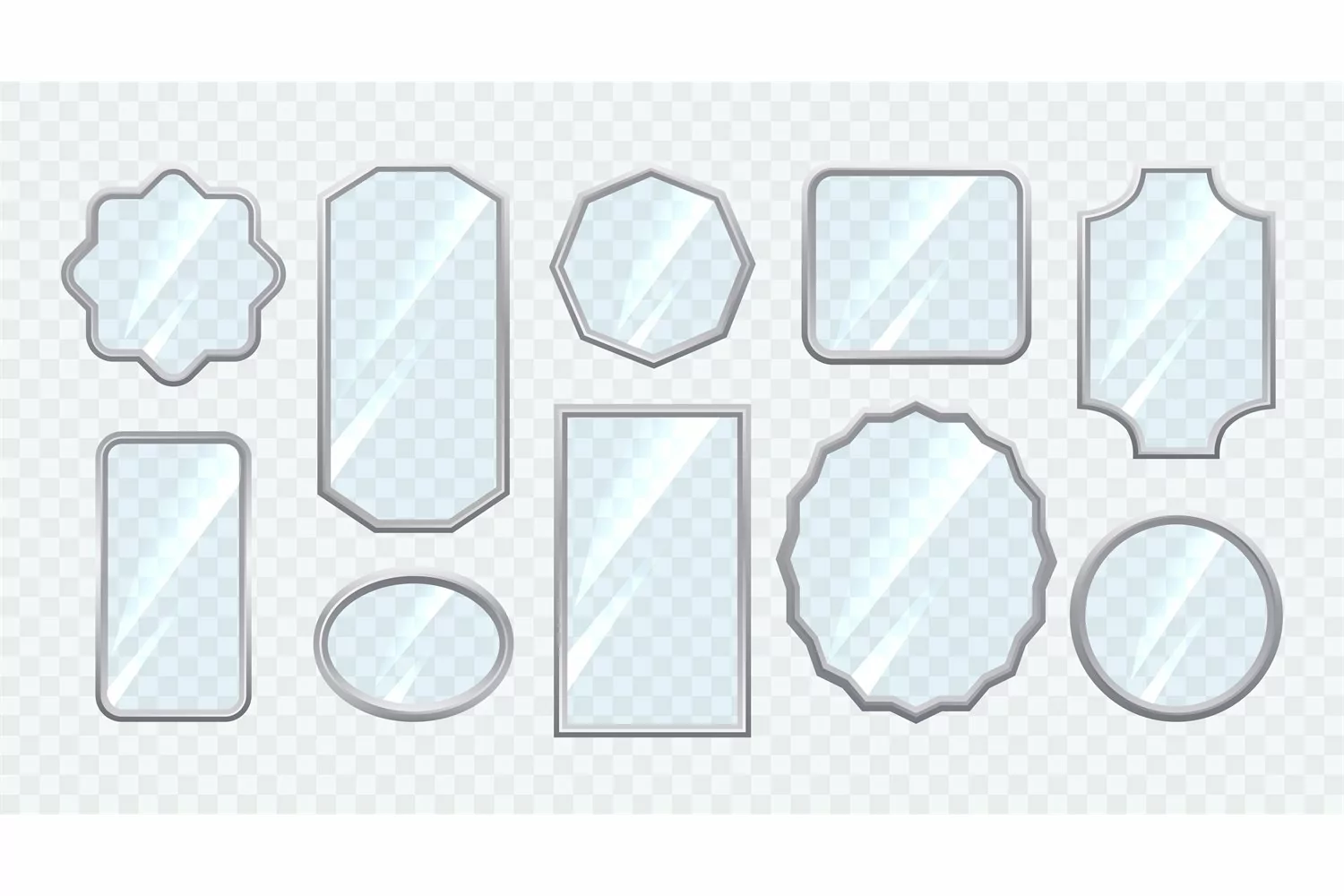 Metallic blank silver frames. 3d signage frame signs for images decorations, vector wall interior metal blank photography borders, shiny oval and rectangle chrome templates