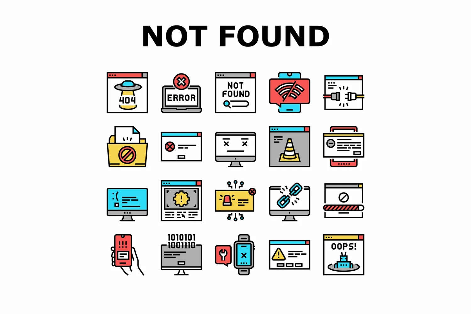 Not Found Web Page Collection Icons Set Vector example image 1