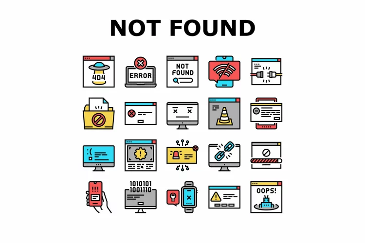 Not Found Web Page Collection Icons Set Vector