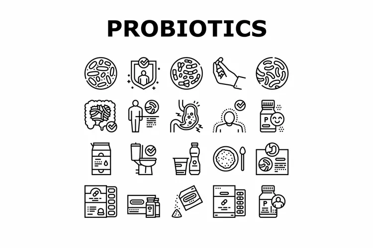Probiotics Bacterium Collection Icons Set Vector example image 1