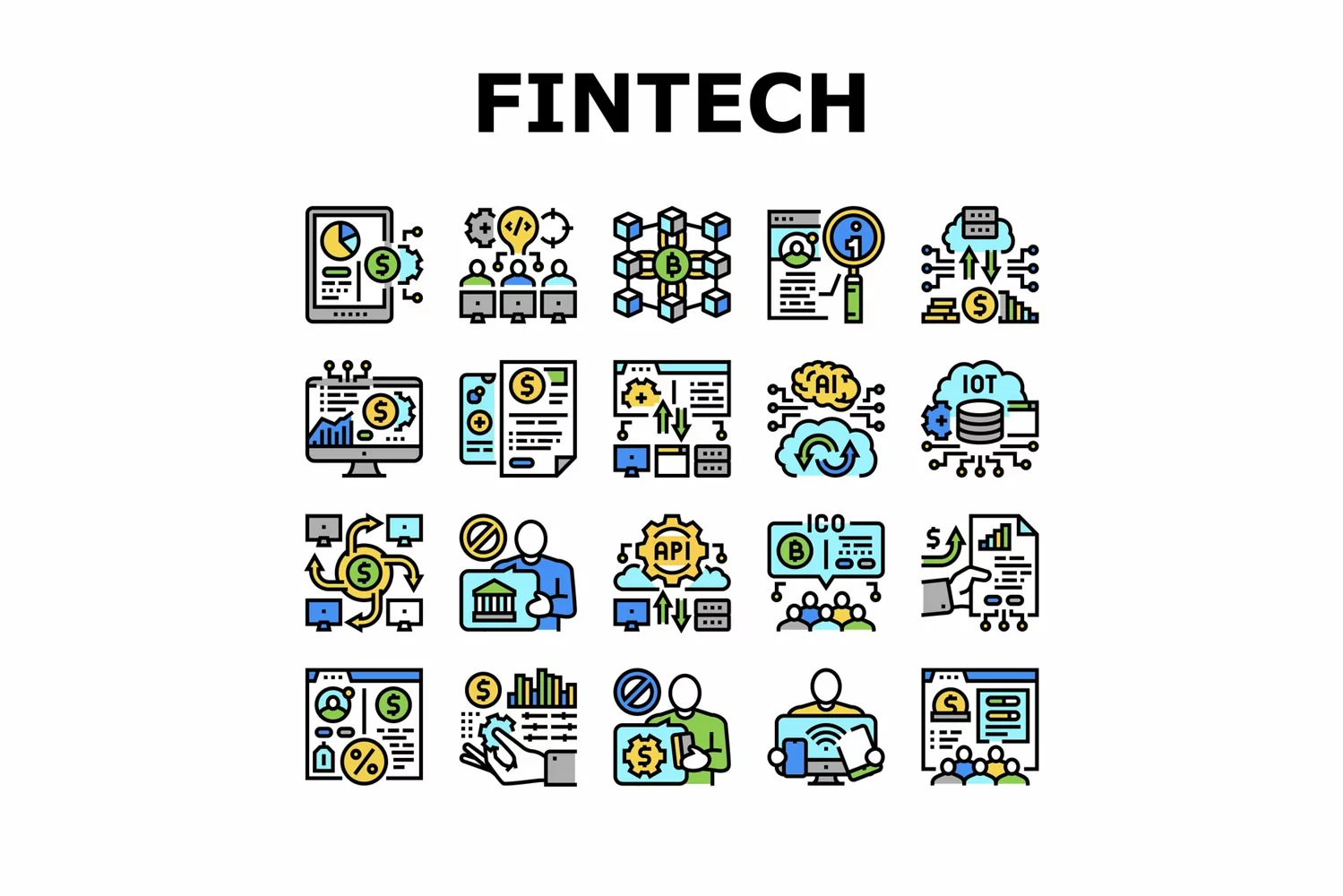 Fintech Financial Technology Icons Set Vector