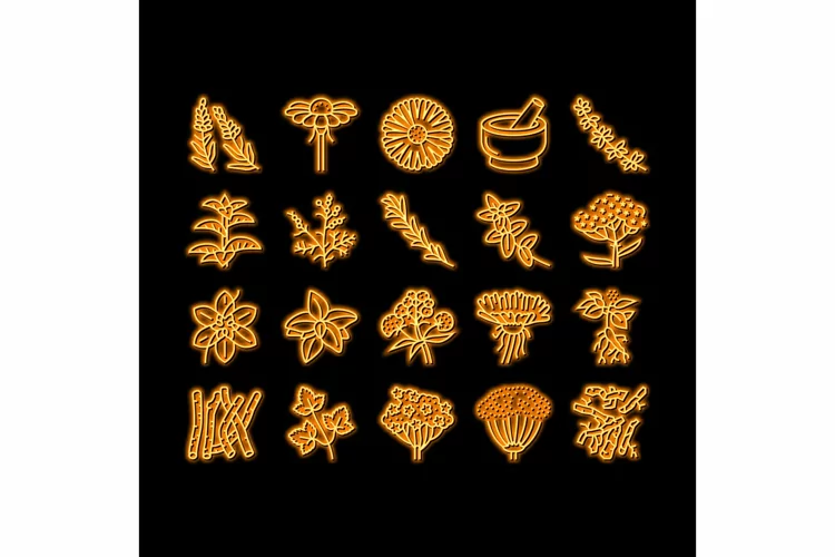 Medical Herb Natural Ingredient neon glow icon illustration example image 1