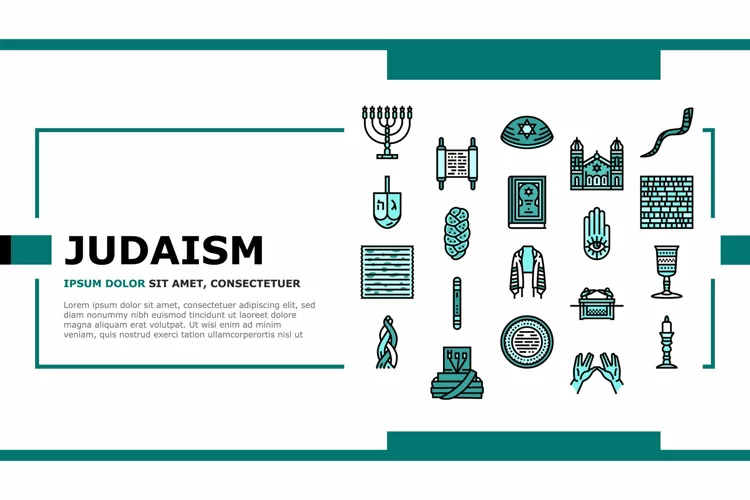 judaism jewish jew israel torah landing web page vector. synagogue holocaust, hebrew israeli, kippur hanukkah, yom shofar, pray star candle judaism jewish jew israel torah Illustration