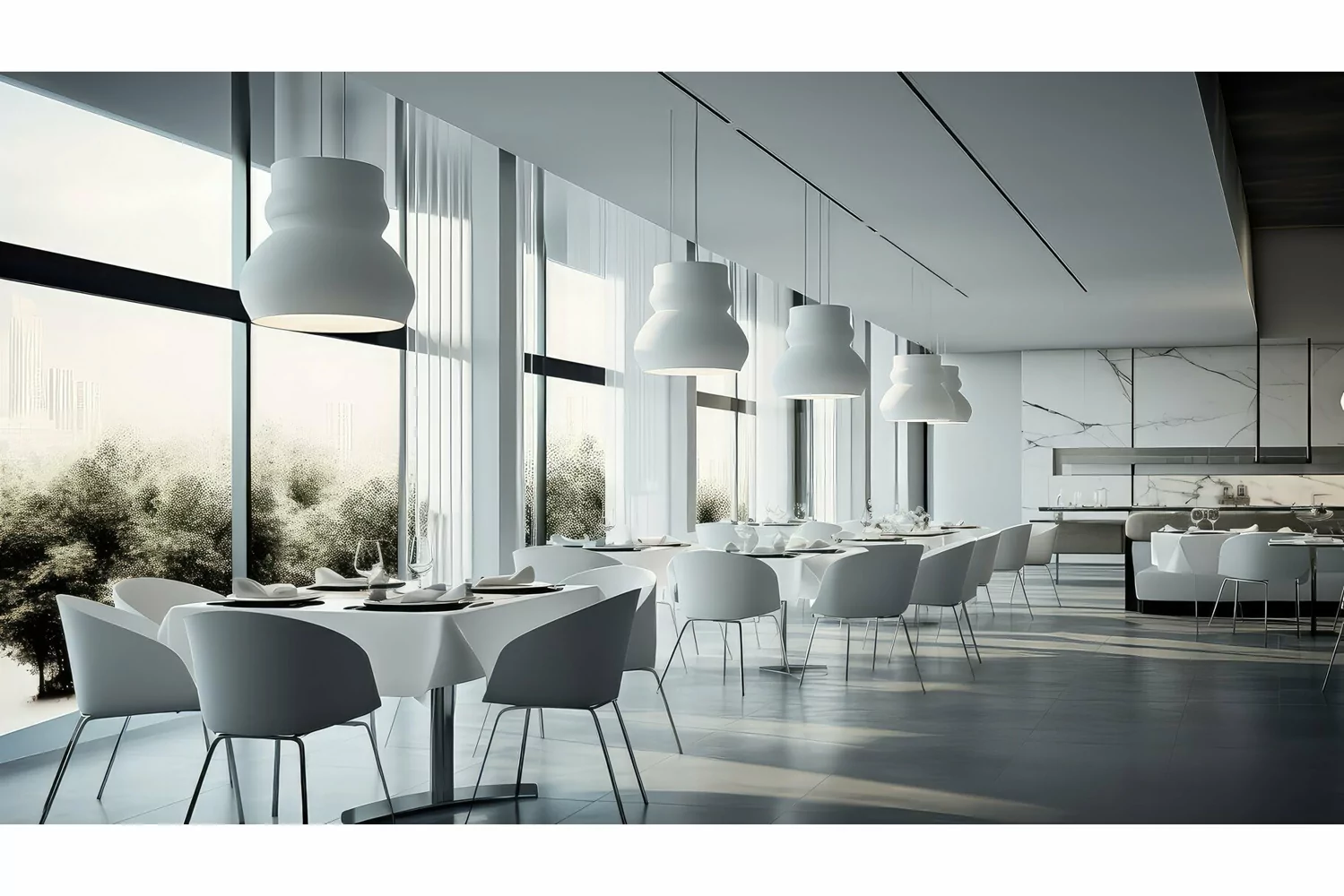 inviting light restaurant background illustration serene sophisticated, relaxed modern, stylish trendy inviting light restaurant background