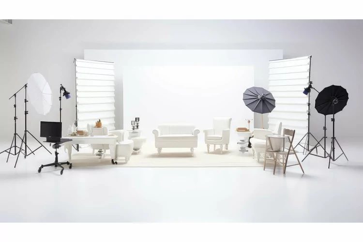 blank white studio background illustration empty pristine, pure simple, sleek modern blank white studio background