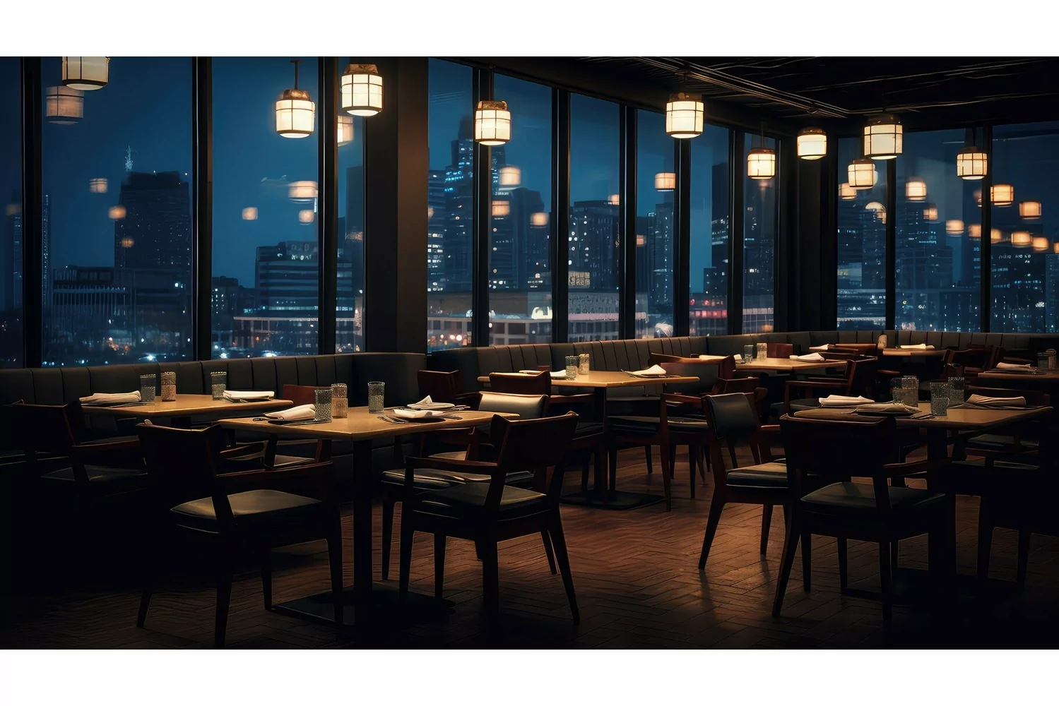 abandoned empty restaurant background illustration closed vacant, solitude calm, serene peaceful abandoned empty restaurant background